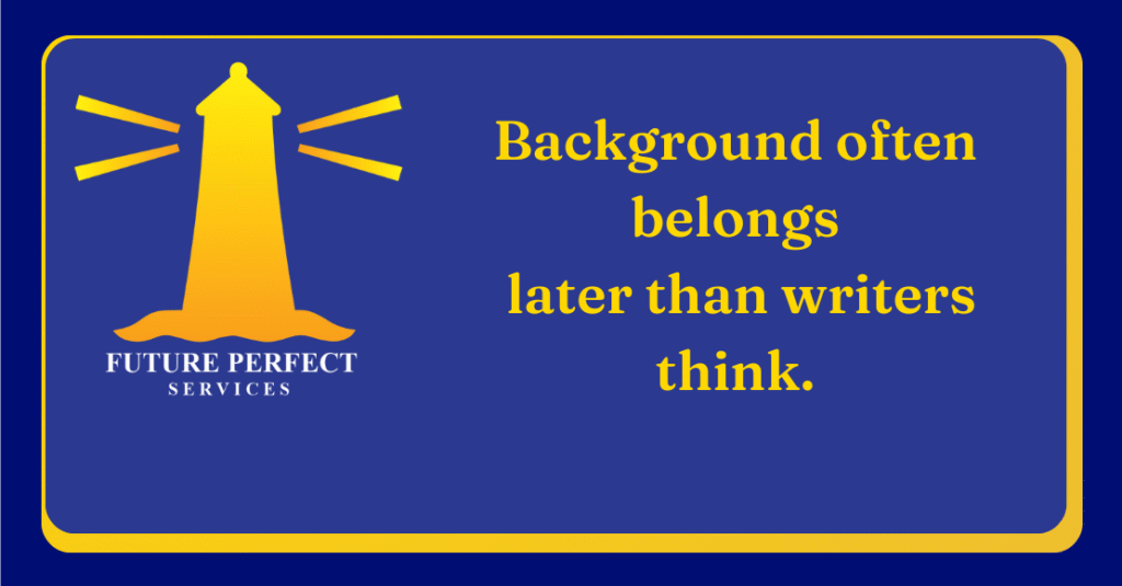 If background slows the reader down, I move it. If it doesn’t earn its space, I cut it.